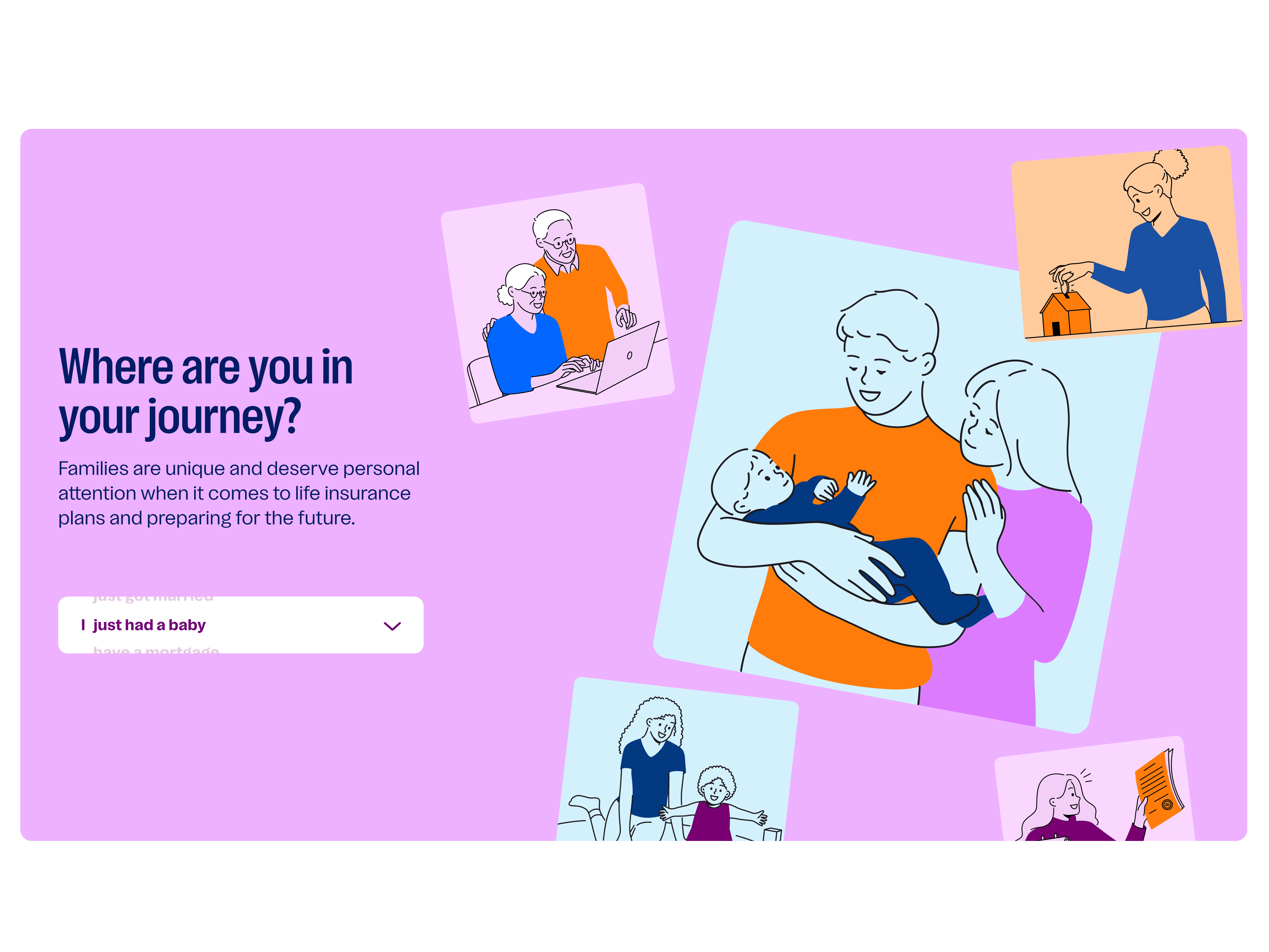 The redesign introduced a clear and intuitive hierarchy that guides families through the experience with confidence and ease. A refined balance of color and typography establishes visual clarity, draws attention to key actions, and reinforces trust without overwhelming the user. Simplified information architecture and plain, human language break complex insurance concepts into approachable, digestible moments, helping families quickly understand their options, compare choices, and move forward with confidence.